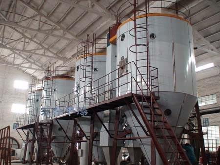 2.Wara l-filtrazzjoni u t-tisħin, l-arja tidħol fid-distributur tal-arja li jinsab fil-parti ta 'fuq tat-tnixxif, arja sħuna spiraling indaqs jidħlu fil-kamra tat-tnixxif. Materjal likwidu permezz ta 'atomizer ċentrifugali ta' veloċità għolja, li huwa fuq il-korp tat-torri, sprej (li jdur) f'xoffa likwidu taċ-ċpar fin ħafna, kuntatt mal-arja sħuna u f'perjodu qasir ħafna ta 'żmien jista' jkun niexef bħala prodotti lesti. Prodotti lesti joħorġu kontinwament mill-qiegħ tat-torri tat-tnixxif u s-separatur taċ-ċiklun, permezz tal-fann tal-egżost li jagħmel tbattil tal-arja.